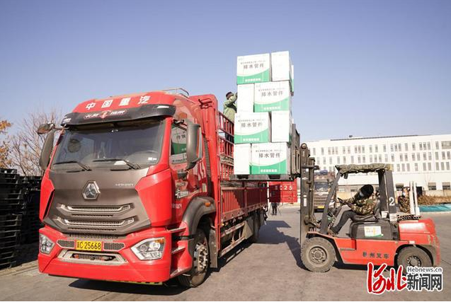 1月17日,兩輛滿載塑料管材的運輸車輛從河北省秦皇島經(jīng)濟技術(shù)開發(fā)區(qū)發(fā)往目的地,這些抗疫物資將用于石家莊和邢臺的隔離場所項目建設(shè)。