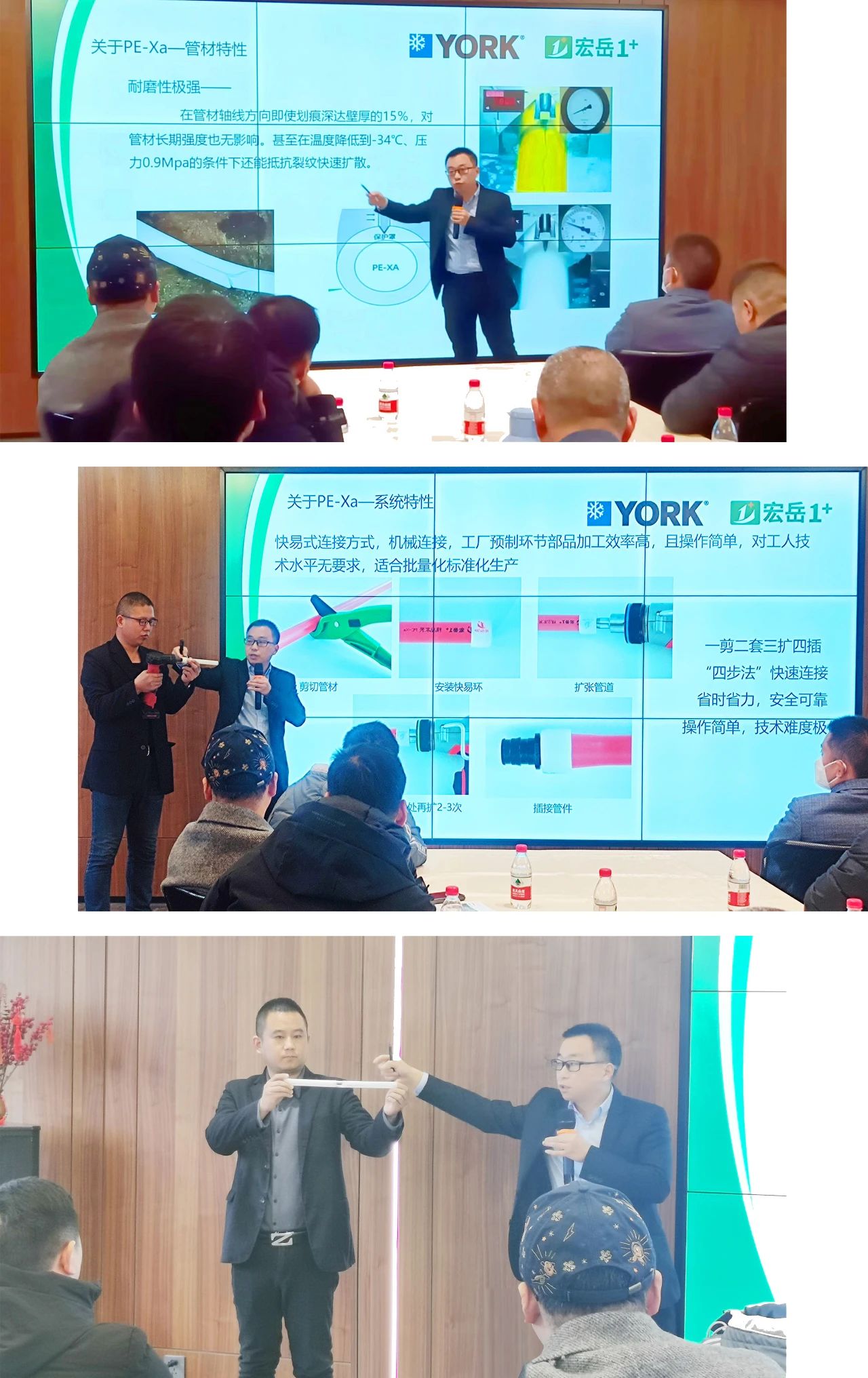 一元復始、萬象更新,人勤春早,奮斗起航,2023年2月2日,宏岳1+PE-Xa快易連接產(chǎn)品推廣交流會在杭州永耀實訓中心拉開帷幕,來自杭州、嘉興、湖州地區(qū)的近百名約克核心經(jīng)銷商客戶參加了此次會議。
